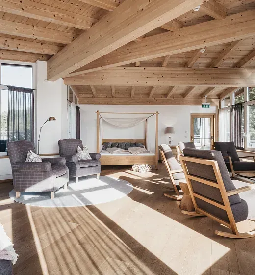 At the Biohotel Rupertus in Leogang, you can expect very special accommodation that harmoniously combines comfort, sustainability and alpine charm. The rooms and suites are lovingly designed and offer you a cozy home in which you can feel completely at home. With a view of the impressive mountains of the Salzburg region, you are invited to feel nature inside too. Each room is furnished with natural materials that promote a healthy indoor climate, while the modern design ensures timeless elegance.